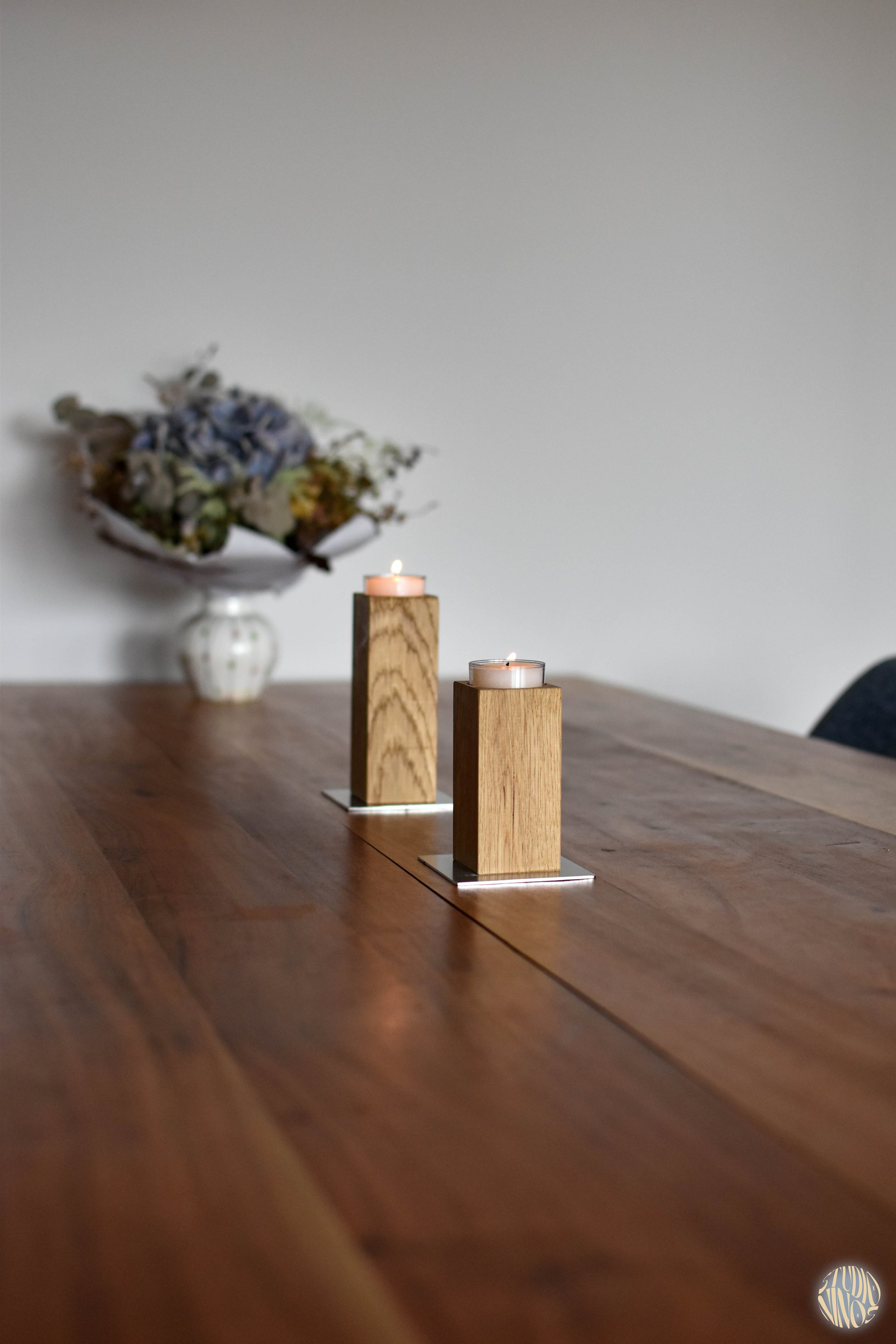 Dank der unterschiedlichen Höhen und einzigartigen Holzmaserungen bringt Roow Struktur und Wärme in dein Zuhause. Die klaren Formen passen perfekt zu skandinavischer, moderner oder natürlicher Einrichtung. Ideal als Kerzenständer für Stabkerzen, einzeln oder als Ensemble arrangiert.
